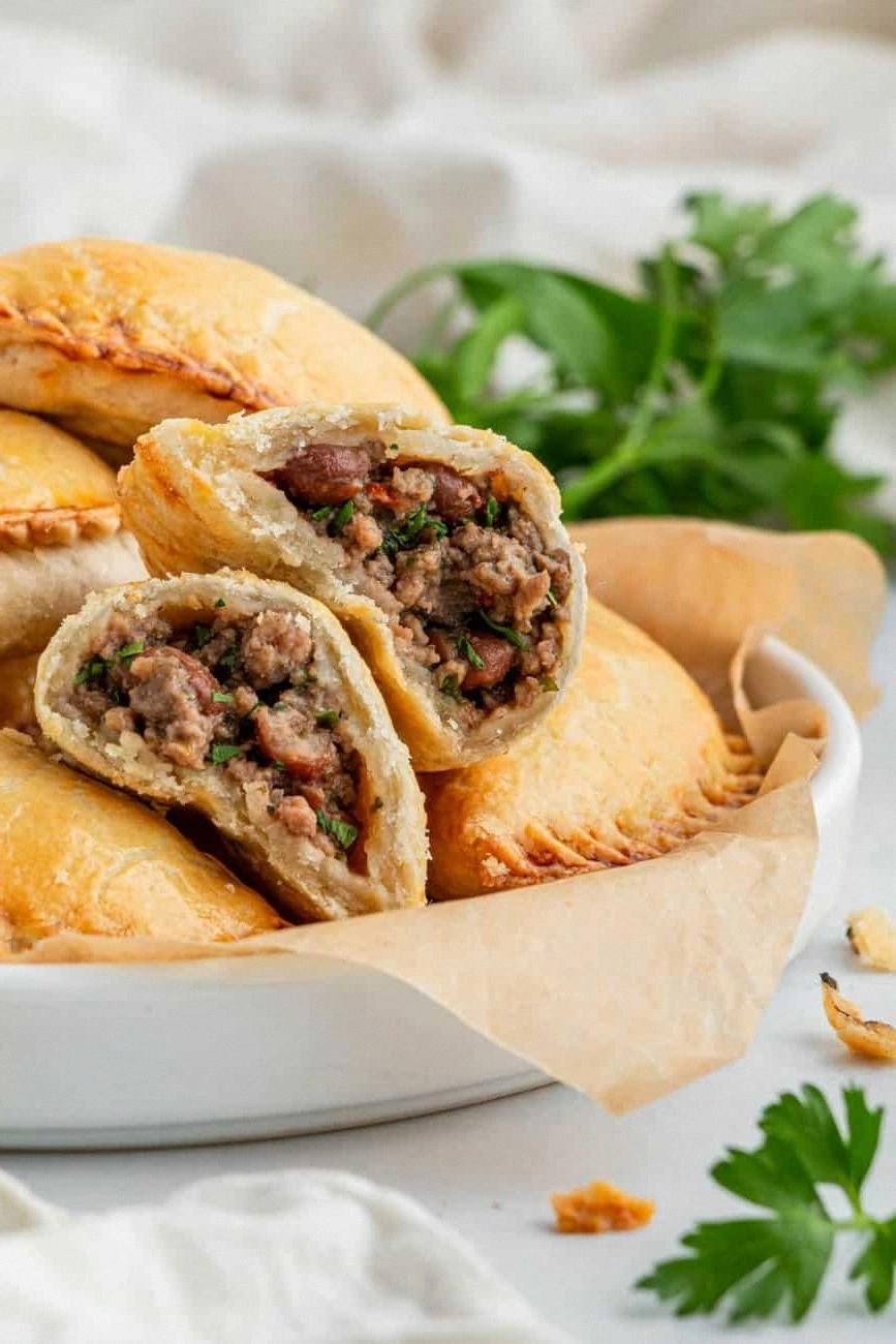 Picture this: a plate of hand‑shaped parcels, each one a pocket of molten beef, beans, and pepper, encased in a buttery, flaky crust that crisps to a golden‑brown perfection. The first bite delivers a burst of savory meat, the subtle sweetness of baked beans, and a hint of fresh cilantro that lifts the whole thing, while the edges crackle like crisped bacon. The filling’s moisture is locked inside, so every bite feels like a warm hug, and the exterior offers a satisfying crunch that dissolves into a buttery finish. It’s a harmony of textures that feels both indulgent and wholesome, and the flavor profile is so bold that it practically sings in your mouth. If you’ve ever been disappointed by soggy empanadas or bland fillings, this version is your new go‑to, and I dare you to taste this and not go back for seconds.