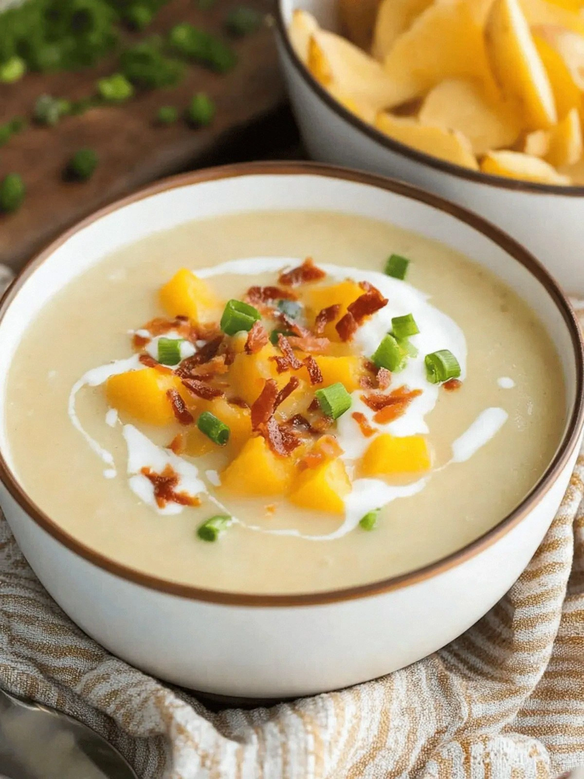 - Serve hot, topped with the crispy bacon and an extra sprinkle of chives. Pair with crusty bread for a complete meal. The first spoonful will melt in your mouth, leaving a lingering warmth that’s impossible to resist.