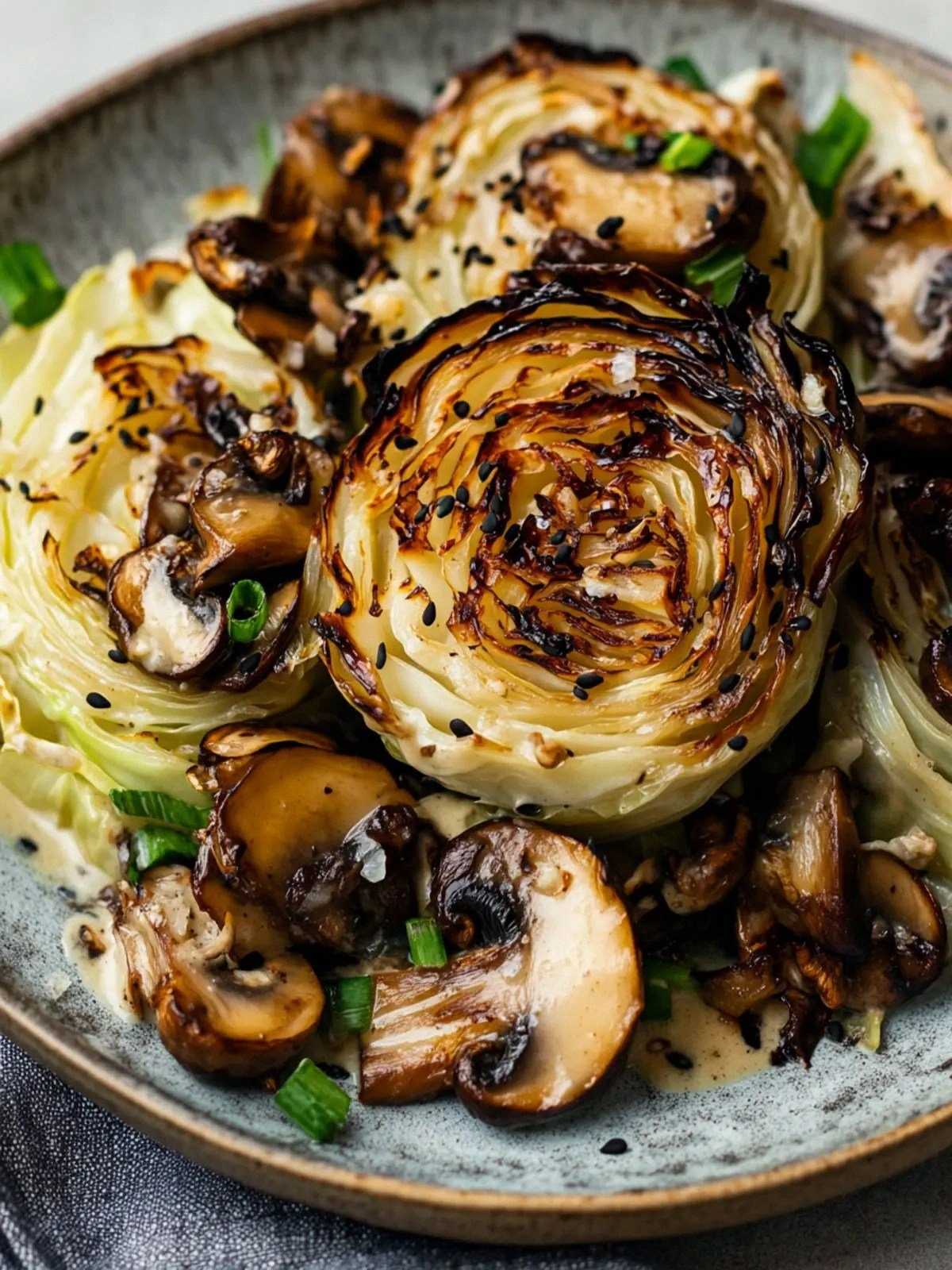 What sets this rendition apart is the combination of char and cream that creates a contrast of heat and smoothness. The cabbage’s natural sugars caramelize into a caramelized crust that offers a satisfying snap, while the miso‑infused sauce envelops the greens in a rich, earthy hug. The mushrooms soak up the sauce, turning each bite into a savory, umami bomb. The subtle heat from the garlic and the brightness from the chives keep the dish from feeling heavy. It’s a dish that feels both comforting and adventurous, and it will make your taste buds dance.